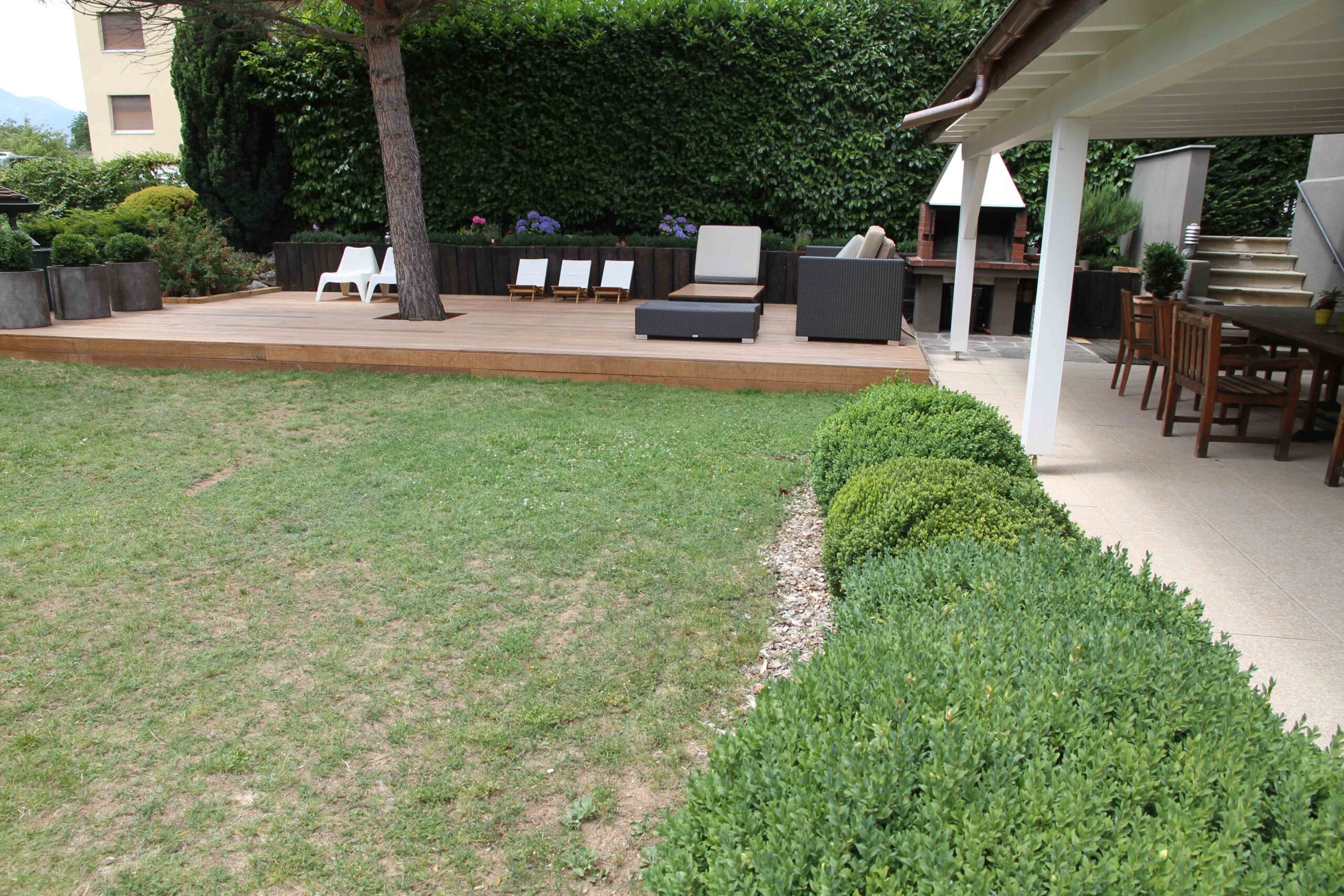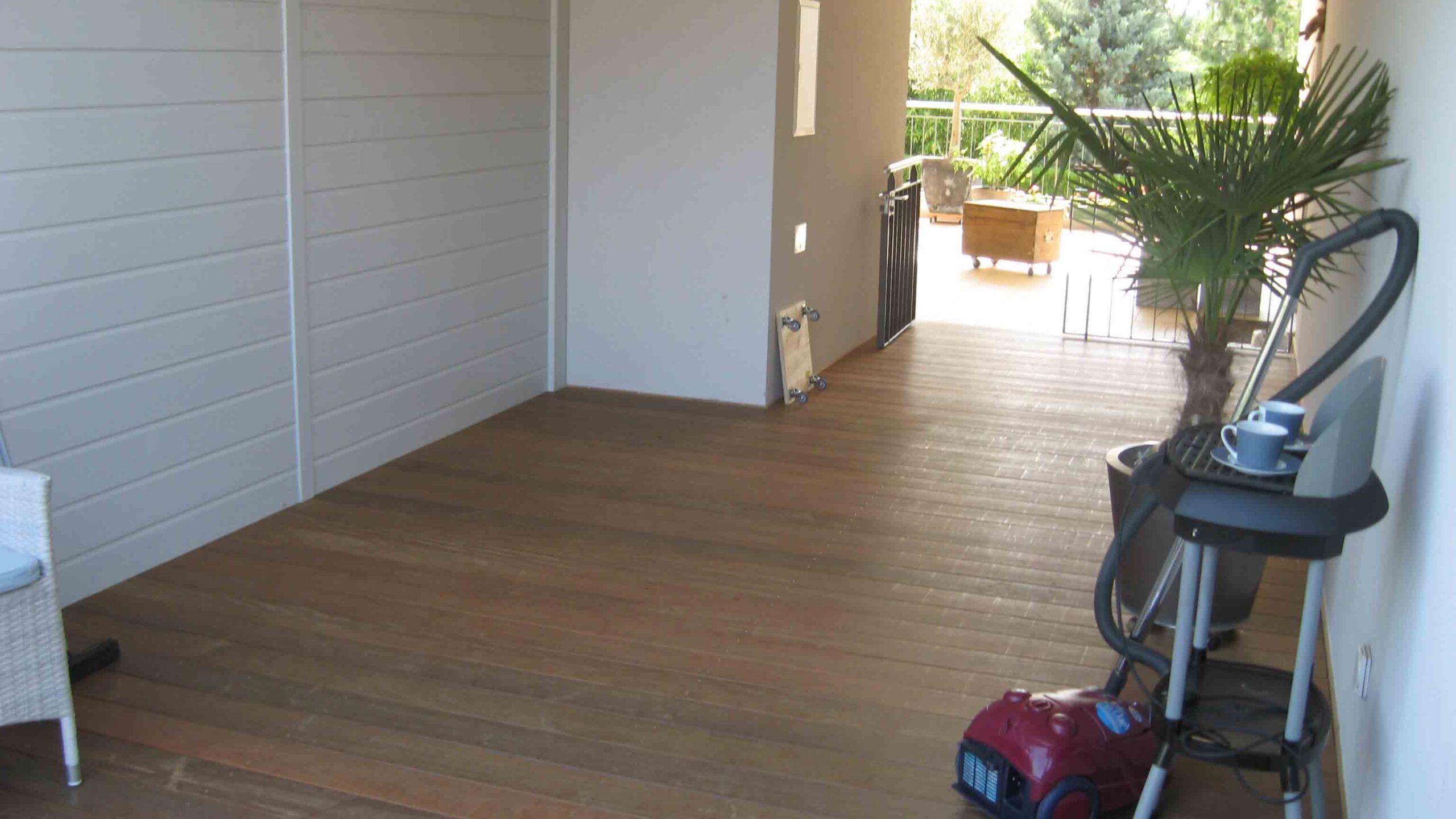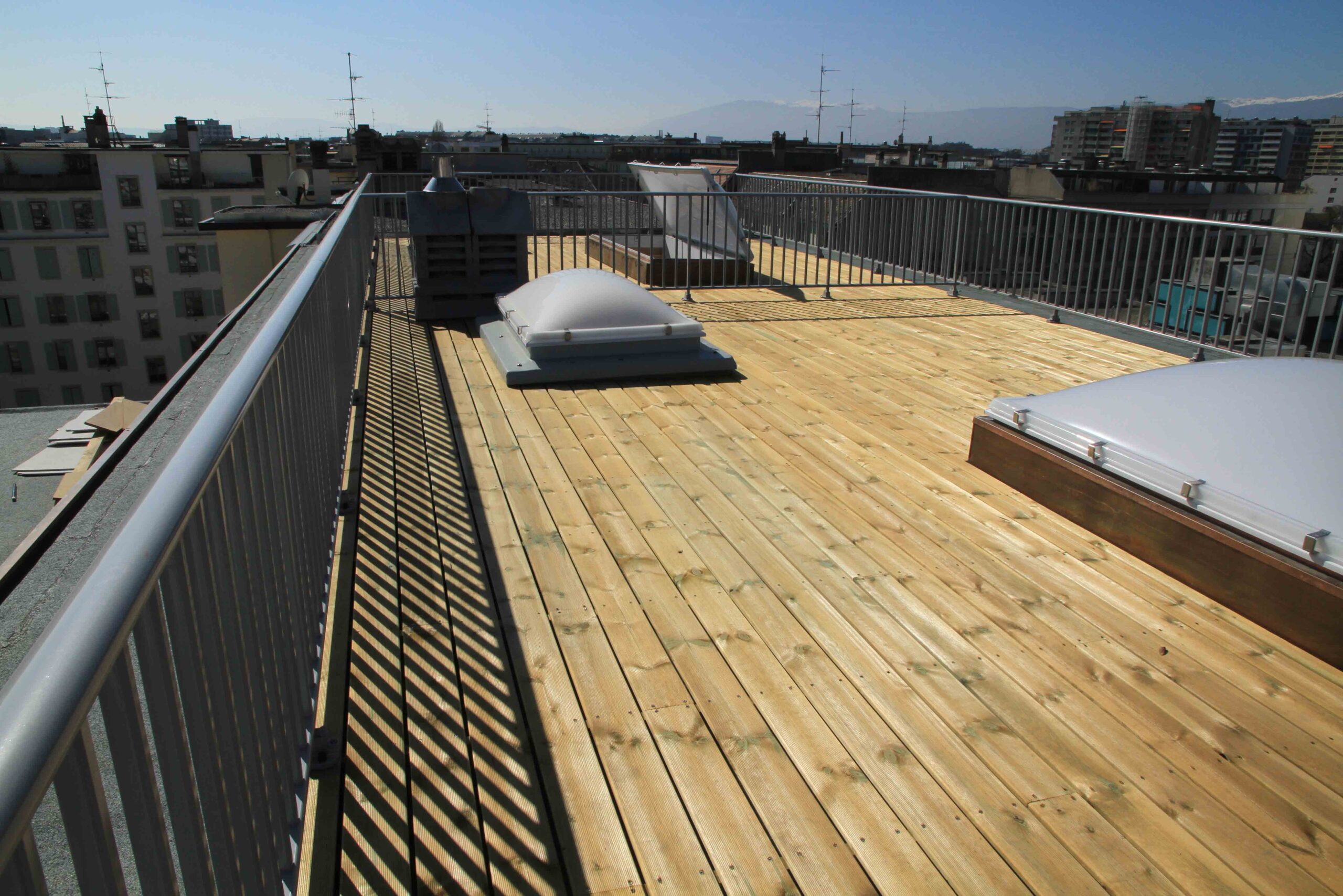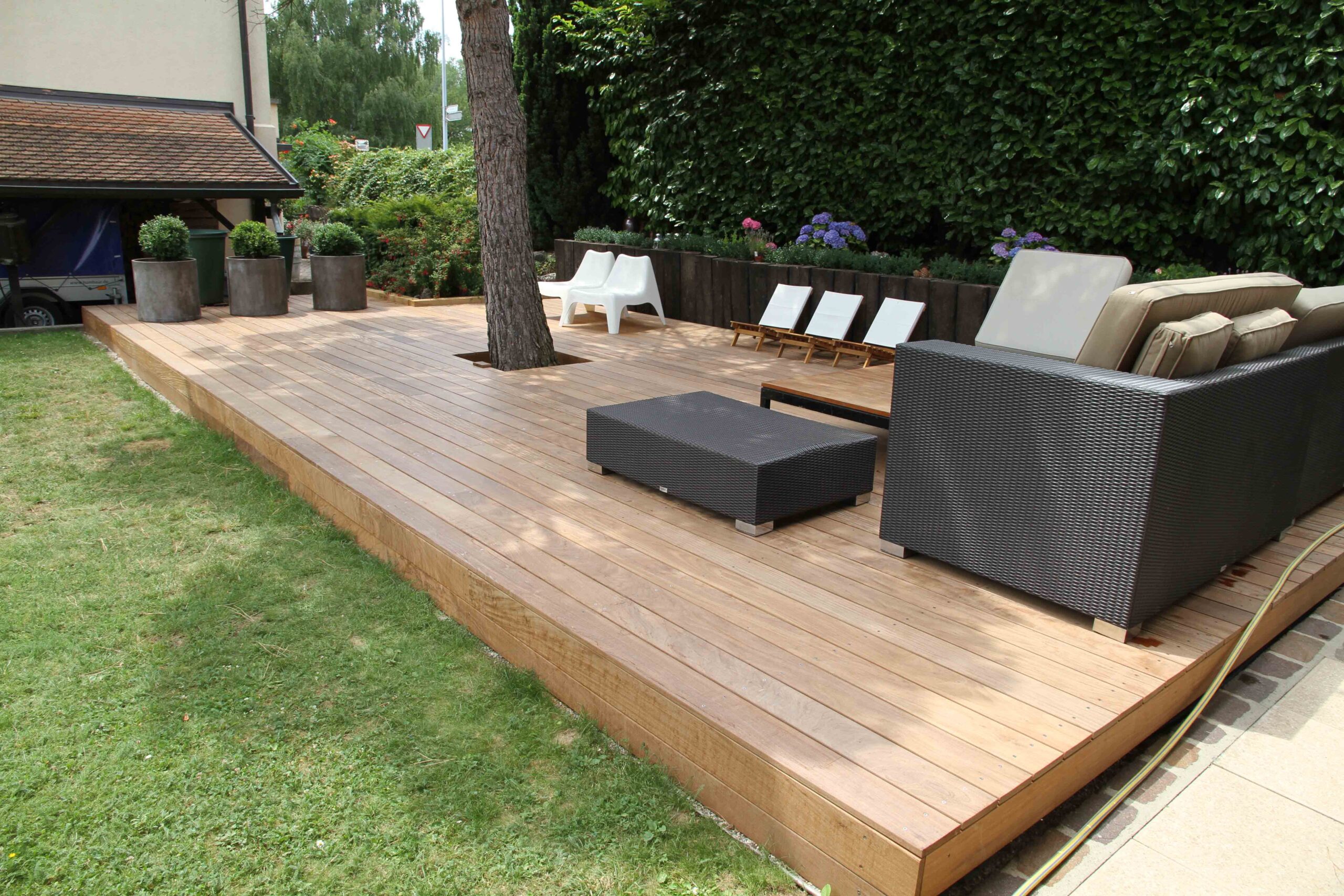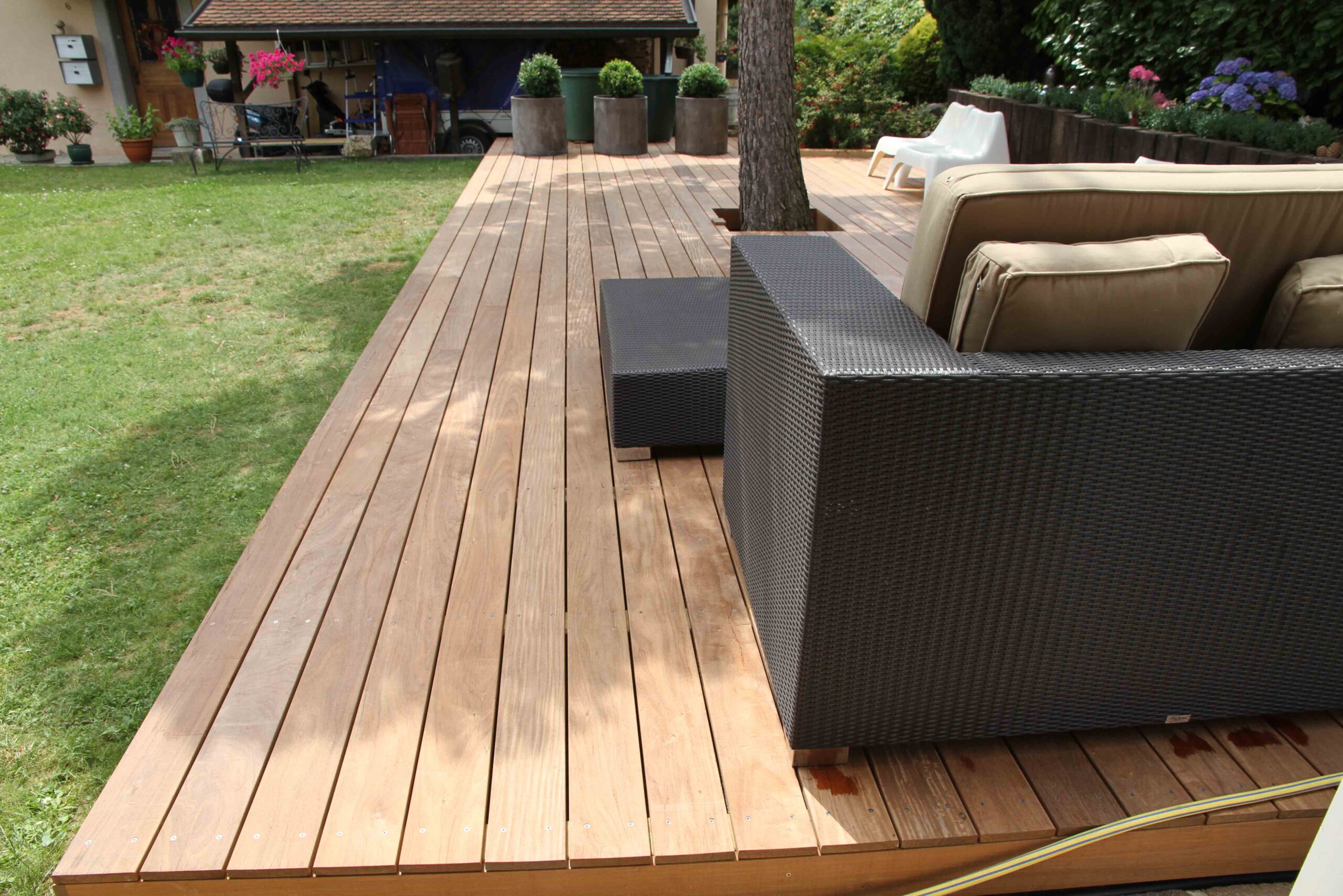 - Platelage en lambourdes avec lames de bois composite ou bois européen naturel