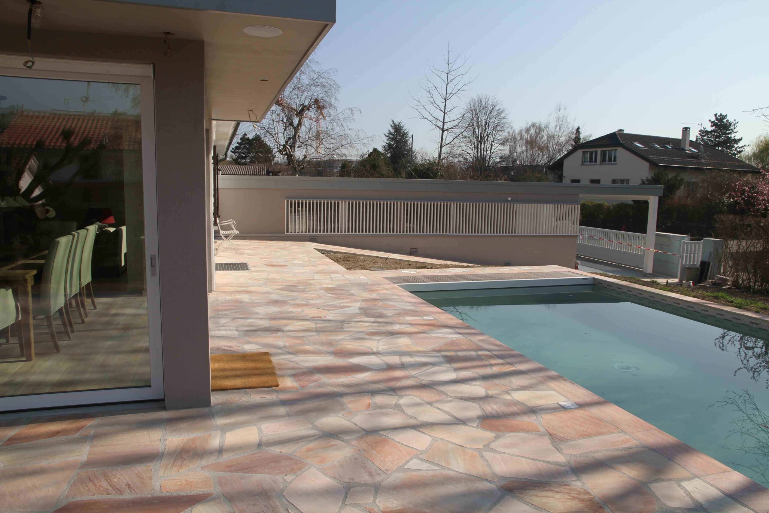 - Aménagement des abords de la piscine avec un sol antidérapant et hydrofuge
